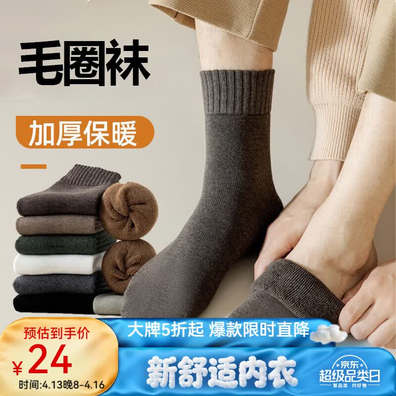 俞兆林 袜子男秋冬中筒袜男士加厚毛圈袜加绒保暖毛巾袜冬季男袜 2821男士毛圈中筒【混色】 5双 均码 (39-44)