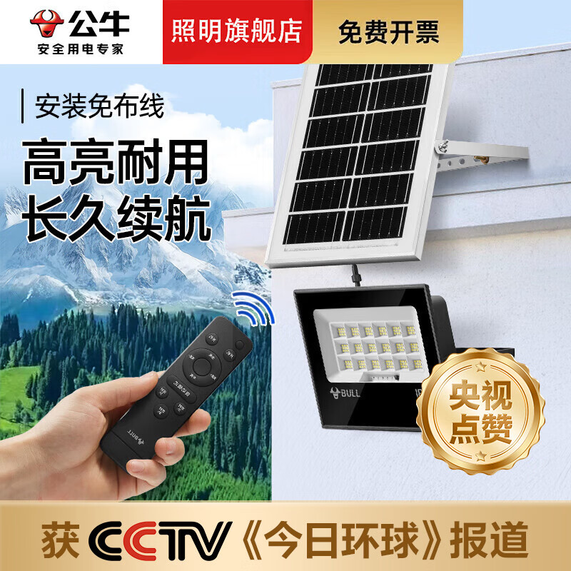 公牛(BULL)太阳能户外照明灯新款大功率庭院灯农村用天黑自动亮防水led路灯 聚光款/150W型/白光/照明150m²