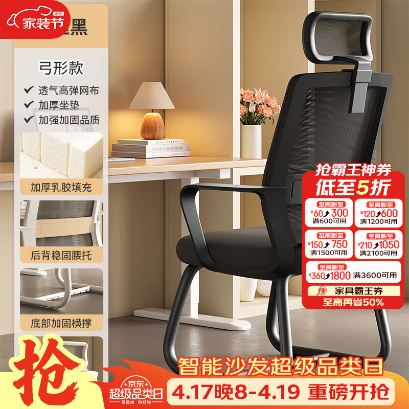 树浩电脑椅办公椅子舒适久坐靠背椅宿舍卧室学习座椅弓形电竞椅写字椅 【升级弓形头枕】乳胶-黑框黑网