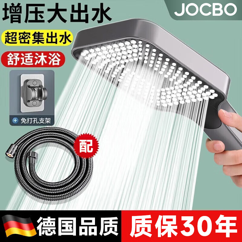 JOCBO【德国】淋浴花洒喷头增压喷淋头手持花洒家用浴室洗澡莲蓬花洒头 增压单花洒+1.5米防爆管+支架