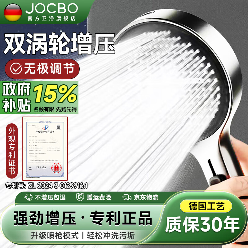 JOCBO【德国】增压花洒喷头家用多功能加压大面板淋浴手持莲蓬喷头 涡轮增压【圆款黑】专利德国技术