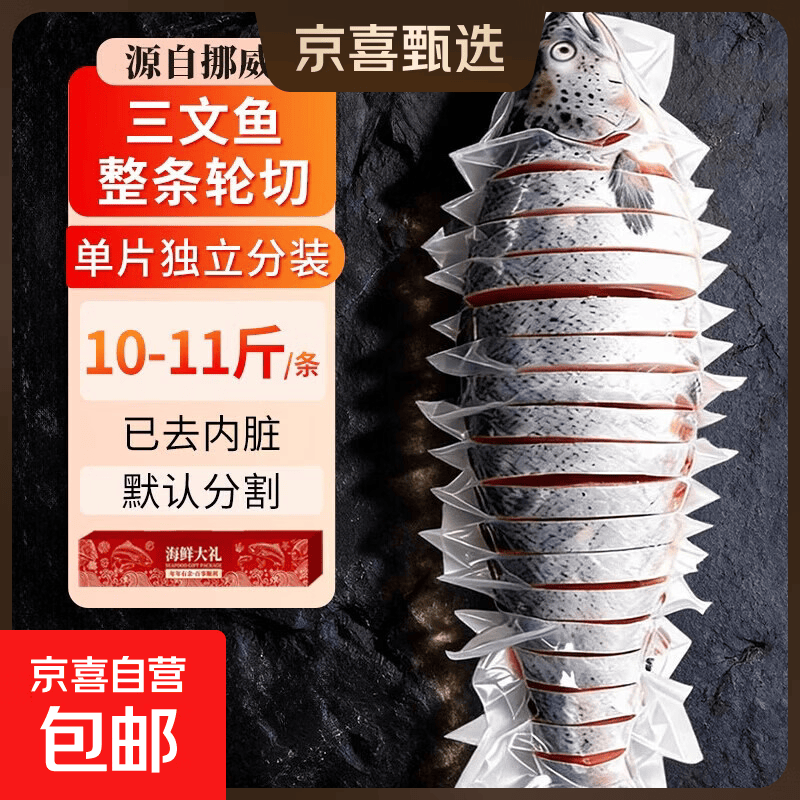 挪威冰鲜三文鱼刺身中段鱼腩大西洋鲑开袋即食健康轻食鱼类净重 【礼盒装】冷冻原切三文鱼整条10- 11斤