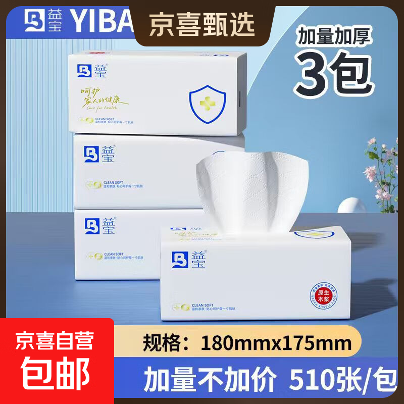 益宝【加厚加量】大包抽纸家用卫生纸餐巾纸面巾纸纸巾原木纸巾 6层 510张*3包