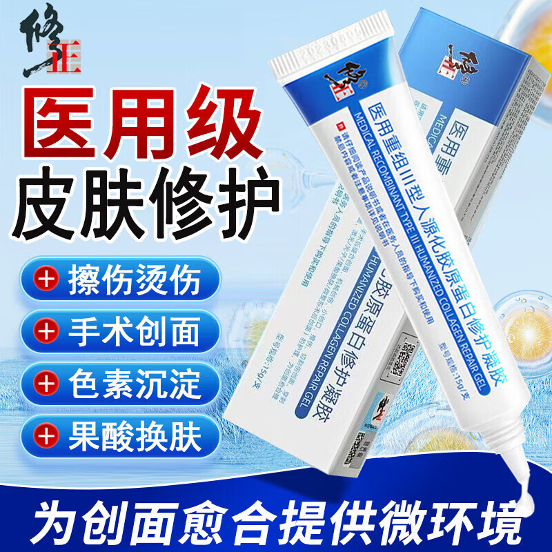修正医用重组三型人源化胶原蛋白凝胶搭表皮烫伤生长因子创面疤痕修复 1支体验装 【药店热卖款15g/支】