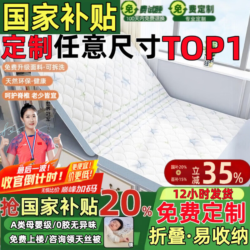 能见度德国VISIBL 定制定做可折叠床垫子152三折儿童椰棕榻榻米专用地铺 第九代抑菌·婴儿棉6cm【黄麻双金棕】婴幼儿级 1x2米(第九代Zero无胶护脊专利)裸睡自由