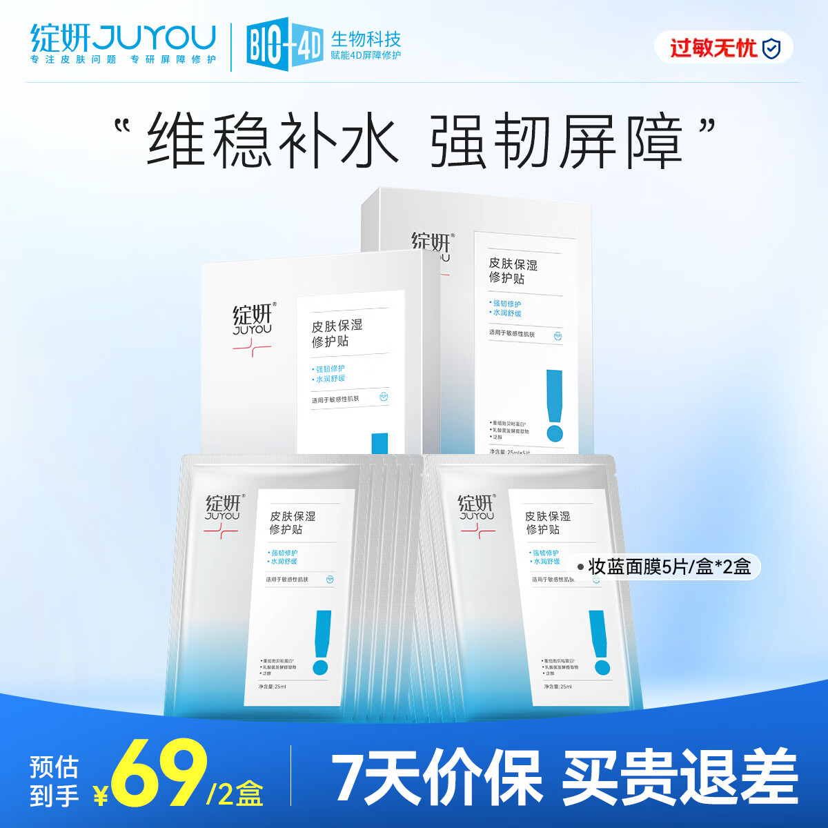 绽妍面膜妆蓝 皮肤保湿修护贴 敏肌可用 修红维稳补水舒缓 护肤品礼物 【2盒共10片】妆蓝补水保湿面膜