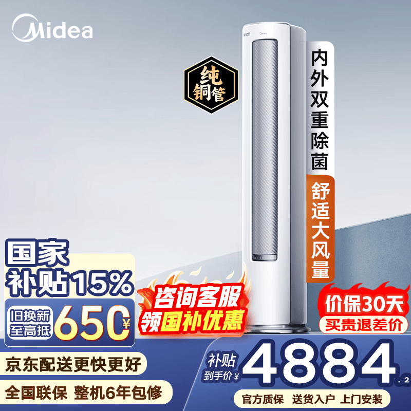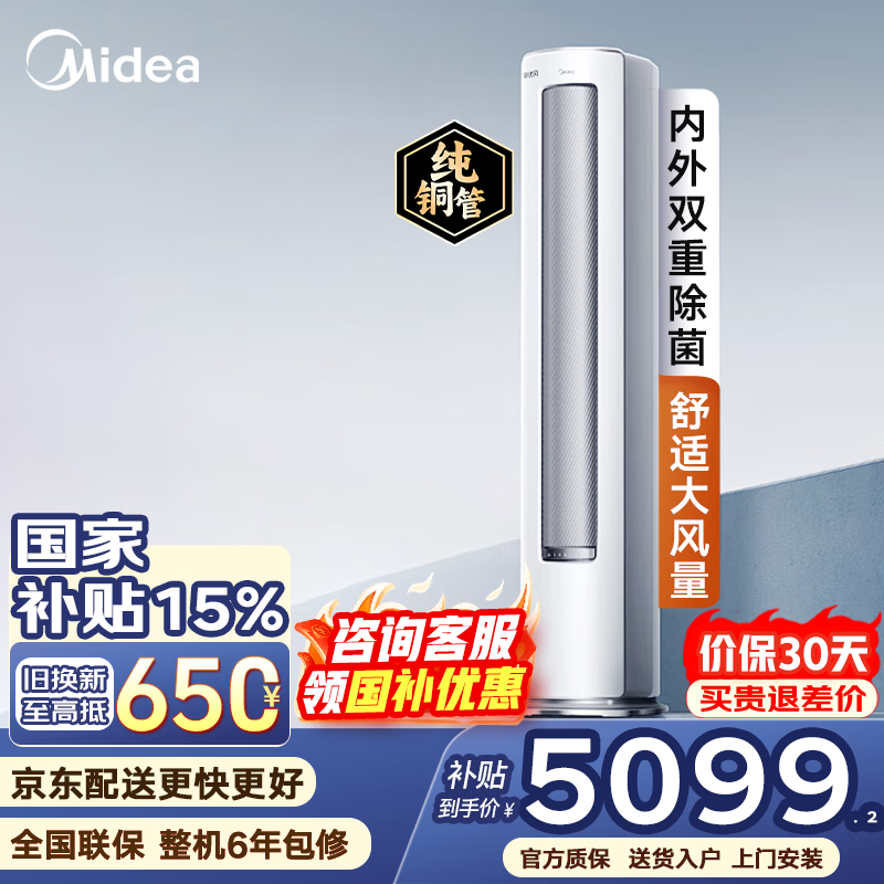 美的(Midea)空调立式大3匹风尊二代全面风柜机新一级能效变频冷暖客厅高颜值柜式空调大风量APP智控 国家补贴 大2匹一级能效静优风 循环大风量