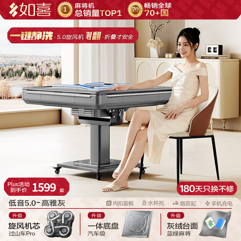 如喜【防侧翻20万次不卡牌】麻将机全自动餐桌低音家两用一体折叠电动 40【低音5.0超薄旋风机】防侧翻-灰台面-灰 请联系客服选择麻将牌大小