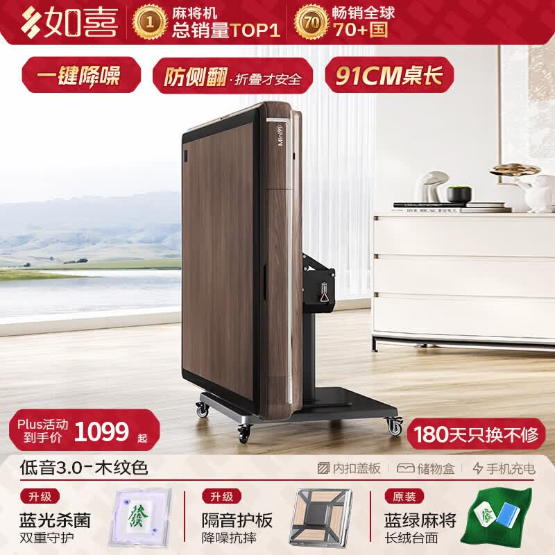 如喜【防侧翻20万次不卡牌】麻将机全自动餐桌低音家两用一体折叠电动 7【迷你91cm桌长】低音3.0一键降噪-防侧翻-木纹 请联系客服选择麻将牌大小