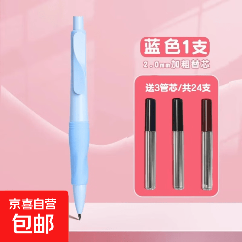 正姿自动铅笔小学生专用一年级活动自动笔儿童2点0高颜值初中生2b铅笔按动不用削的初学者笔芯铅芯 【晴水蓝】1支+3盒(送24支替芯)