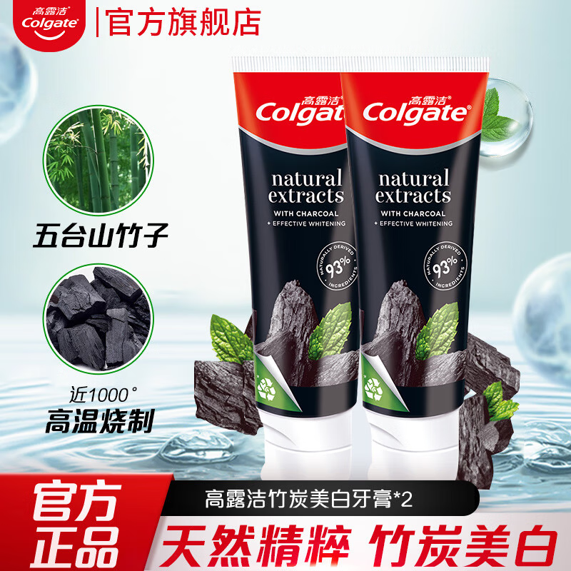 高露洁喜马拉雅盐健康晶亮牙膏115克 卓效美白 去牙渍 清新护龈 【清新美白】天然竹炭*2支