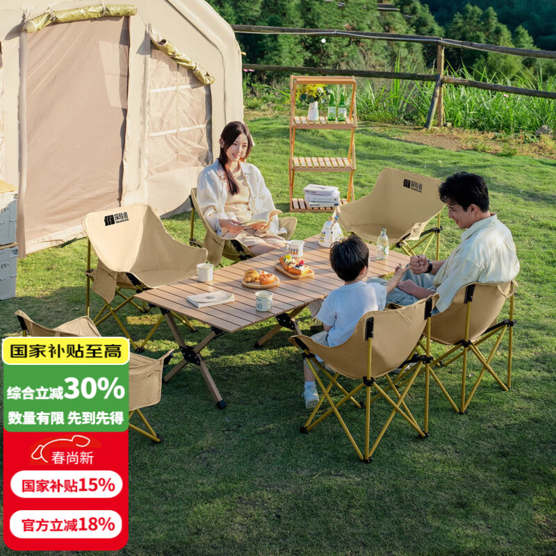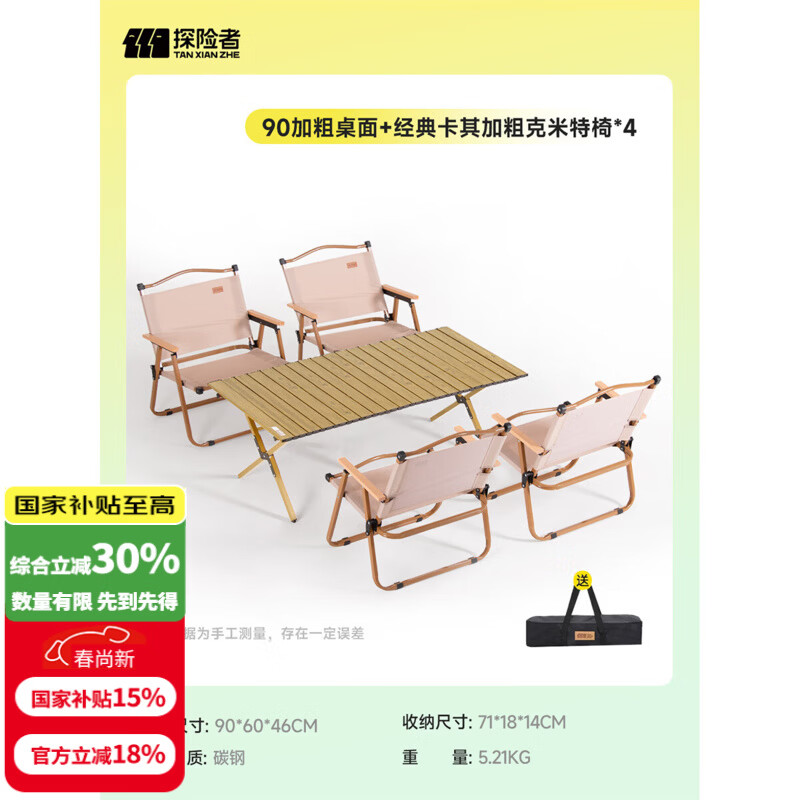探险者(TAN XIAN ZHE)户外蛋卷桌折叠桌便携式桌椅套装露营桌子一套野餐桌装备全套摆摊 90稳固木色桌+4*经典卡其克米特椅