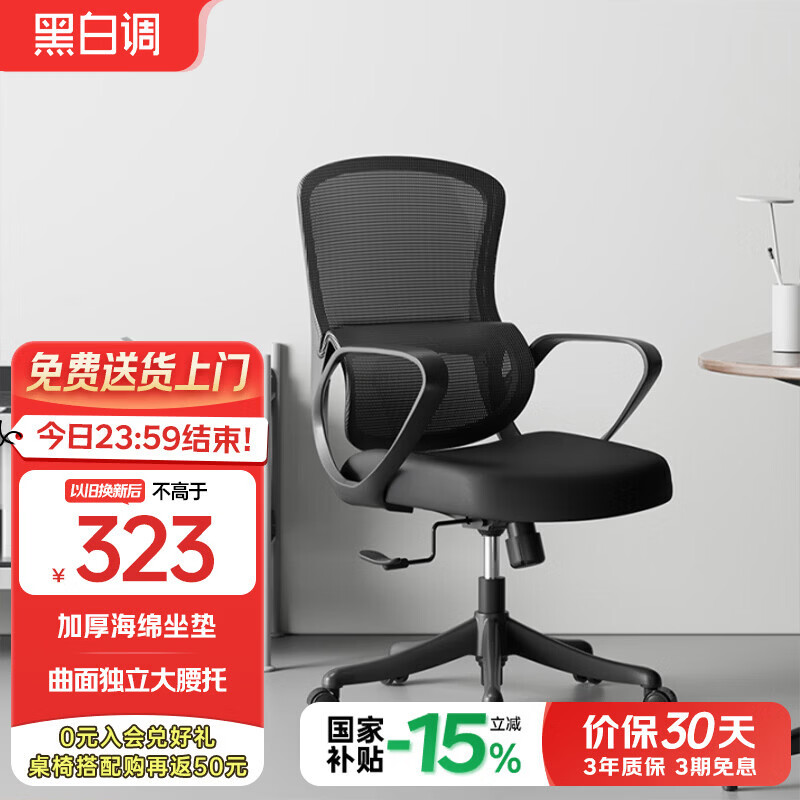 黑白调P1人体工学椅电脑椅办公椅子人工力学座椅久坐学习椅4向腰托 P1air-【原生海绵坐垫】耀黑 无颈枕