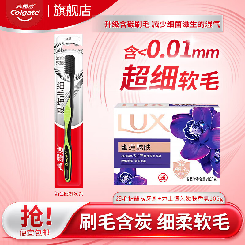 高露洁强推专业系列清新口气多效护理牙齿清洁洁净去渍套装组合 高露洁软毛牙刷1支 送力士香皂