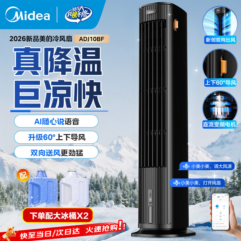 美的(Midea)空调扇制冷风扇家用冷风机客厅卧室立式水冷塔扇加湿降尘冷气机加水加冰降温凉风机 【直流变频冷风】升级语音智控