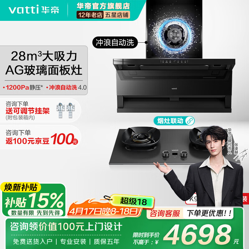 华帝(VATTI)K9烟灶套装【小飞翼Pro K9系列 】超薄顶侧双吸28风量大吸力自清洗烟灶联动抽油烟机灶具以旧换新 【定时联动套装】K9+308G燃气灶-咨询买性价比309D灶 天然气