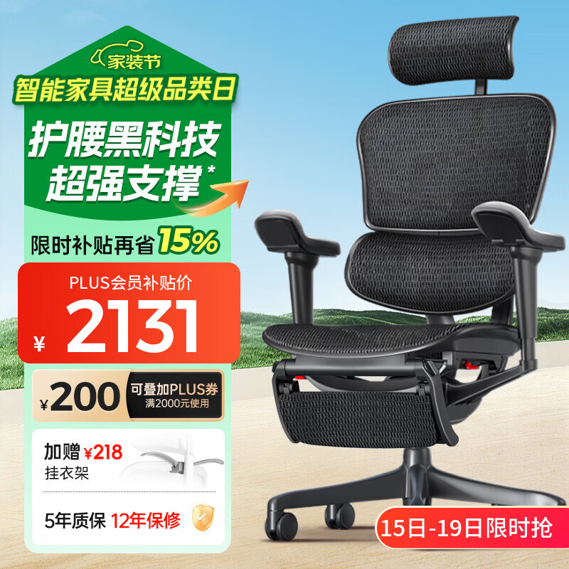 Ergonor保友金豪b雄鹰 人体工学椅 电脑椅 电竞椅办公椅子可躺老板椅 【金豪雄鹰X9】武士黑+躺舒宝