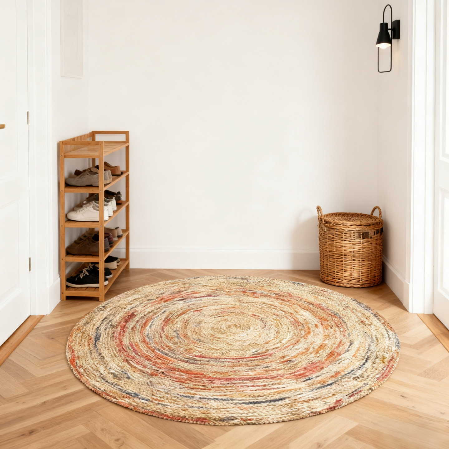 欧纶斯(Oulens)圆形地毯轻奢风高级感客厅地垫茶几毯卧室门口沙发床边毯可水洗 梦幻年轮-红 80cm*80cm 【耐磨耐脏】
