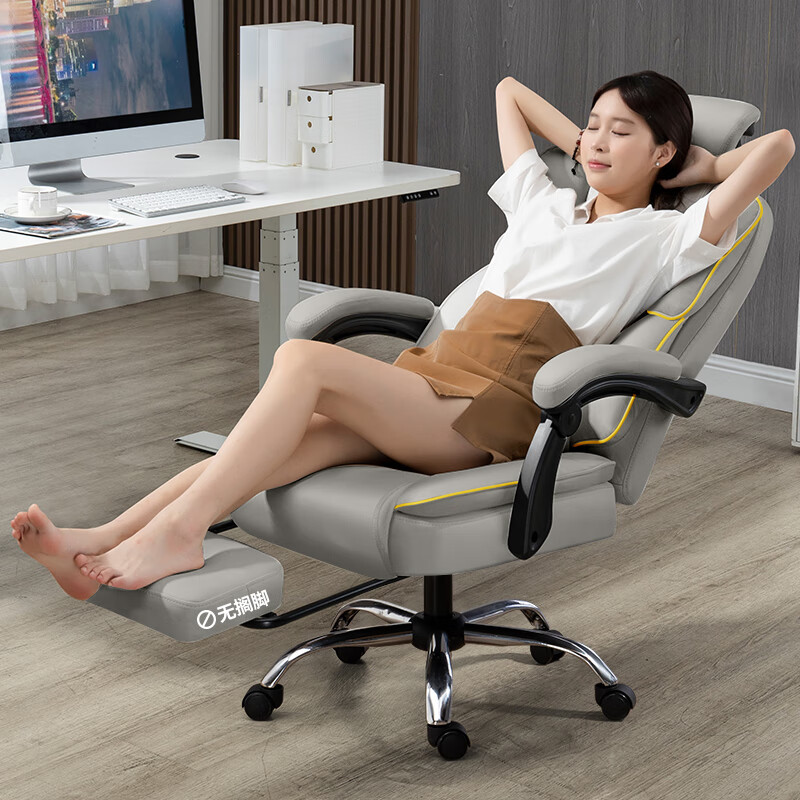 科幻猩电竞椅电脑游戏椅舒服久坐家用椅子办公椅可躺可升降椅座椅躺椅 驱动升级款-灰色-头枕-海绵坐垫-钢制脚 滑轨扶手