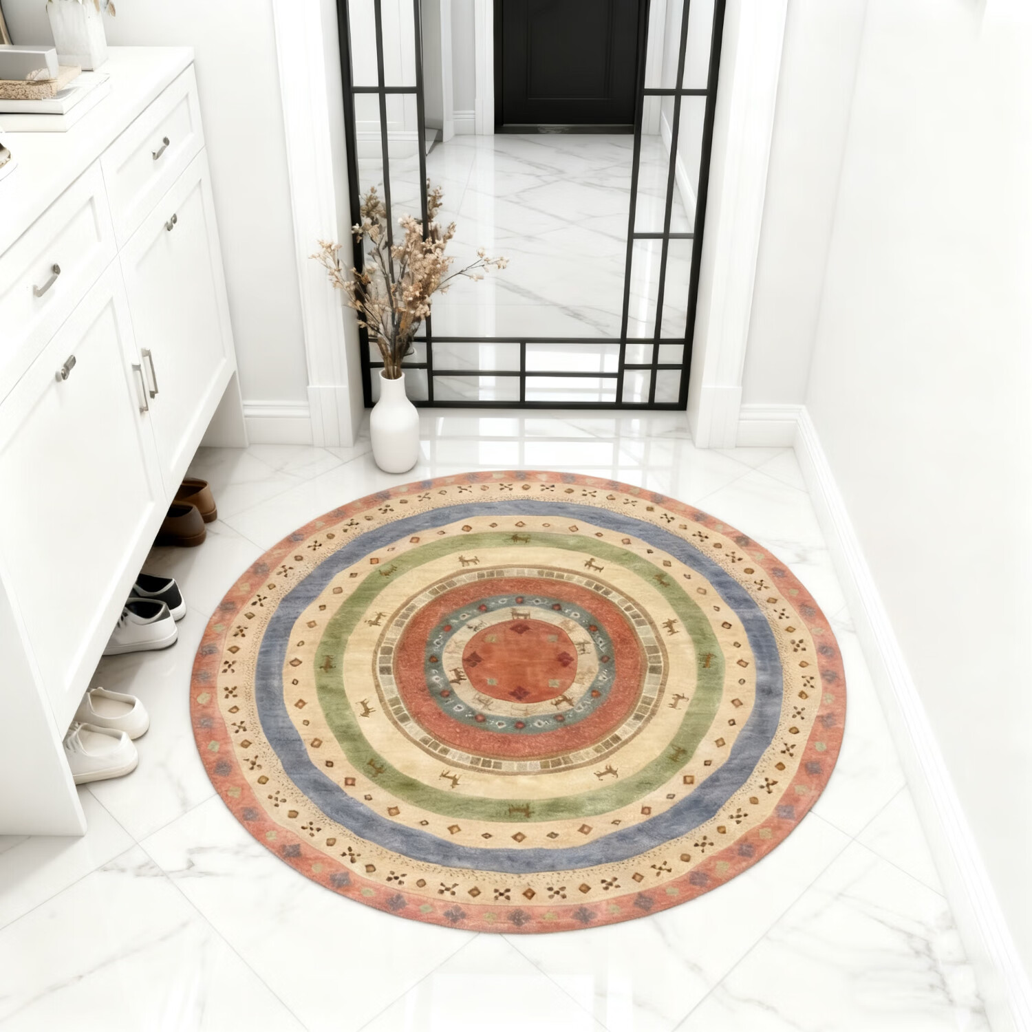 欧纶斯(Oulens)圆形地毯轻奢风高级感客厅地垫茶几毯卧室门口沙发床边毯可水洗 北欧Red新款 80cm*80cm 【耐磨耐脏】