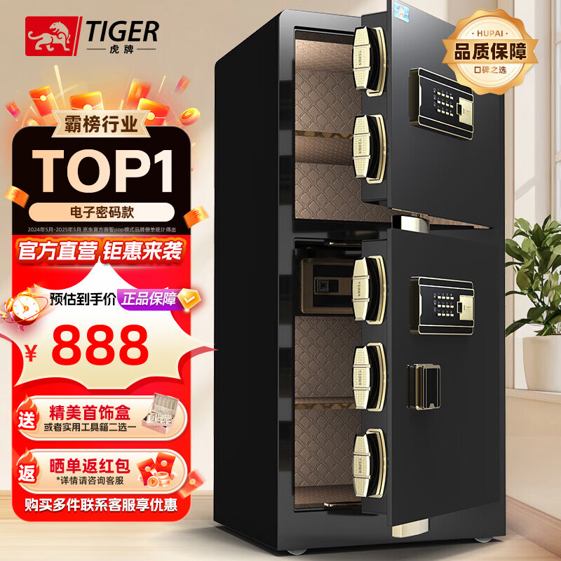 虎牌保险柜家用小型指纹密码WIFI全钢防盗可入墙办公大型保险箱新款保管箱 100cm系列-双门磨砂黑 指纹/钥匙/密码/临时秘钥/(密码+指纹)