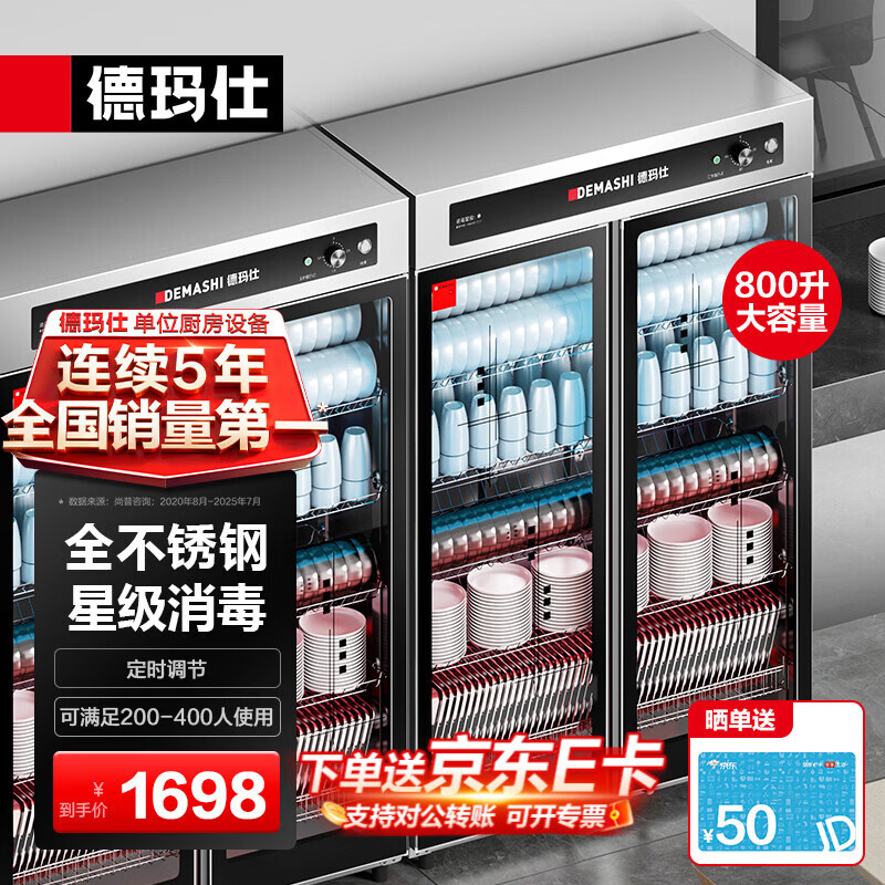 德玛仕(DEMASHI)商用消毒柜 立式消毒碗柜消毒柜家用酒杯茶杯餐具碗筷家用厨房紫外线消毒柜大容量立式消毒柜 内外不锈钢丨对开门800升丨供200-400人