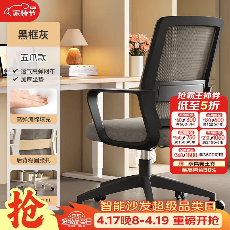树浩电脑椅办公椅子舒适久坐靠背椅宿舍卧室学习座椅弓形电竞椅写字椅 【滑轮】海绵+尼龙脚-黑框灰网