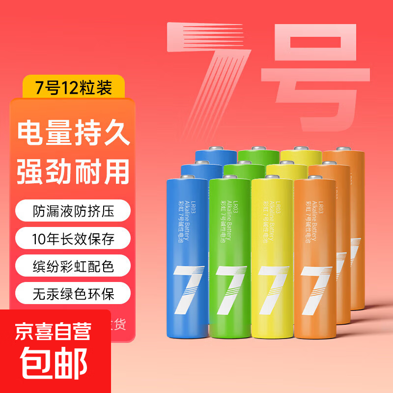 【小米同款色彩】高能彩虹碳性电池5号电池钟表玩具计算器电池7号电池空调遥控器鼠标/颜色随机 高能彩虹碱性7号-【12粒】放电更持久