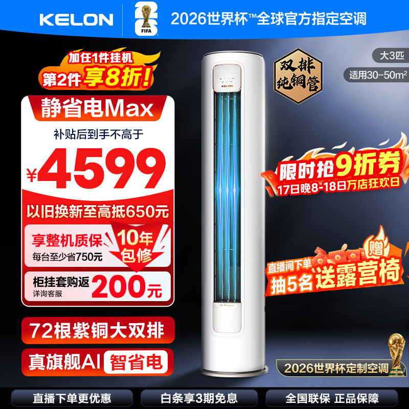 科龙(KELON)空调 海信出品 静省电MAX 询单减200 大3匹柜机 客厅立式新一级变频家用冷暖轻音好眠AI省电 大3匹 一级能效