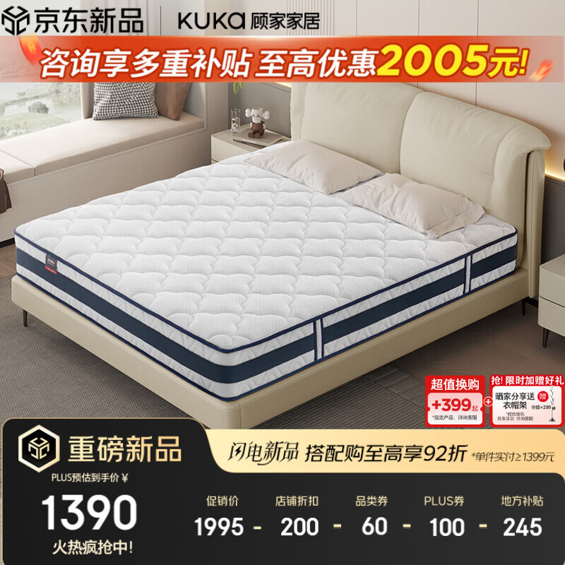 顾家家居(KUKA) 【梦想垫】乳胶床垫学生床垫环保0胶席梦思独袋弹簧双人床垫主卧 卷装版-M0001L【22cm】 1800*2000