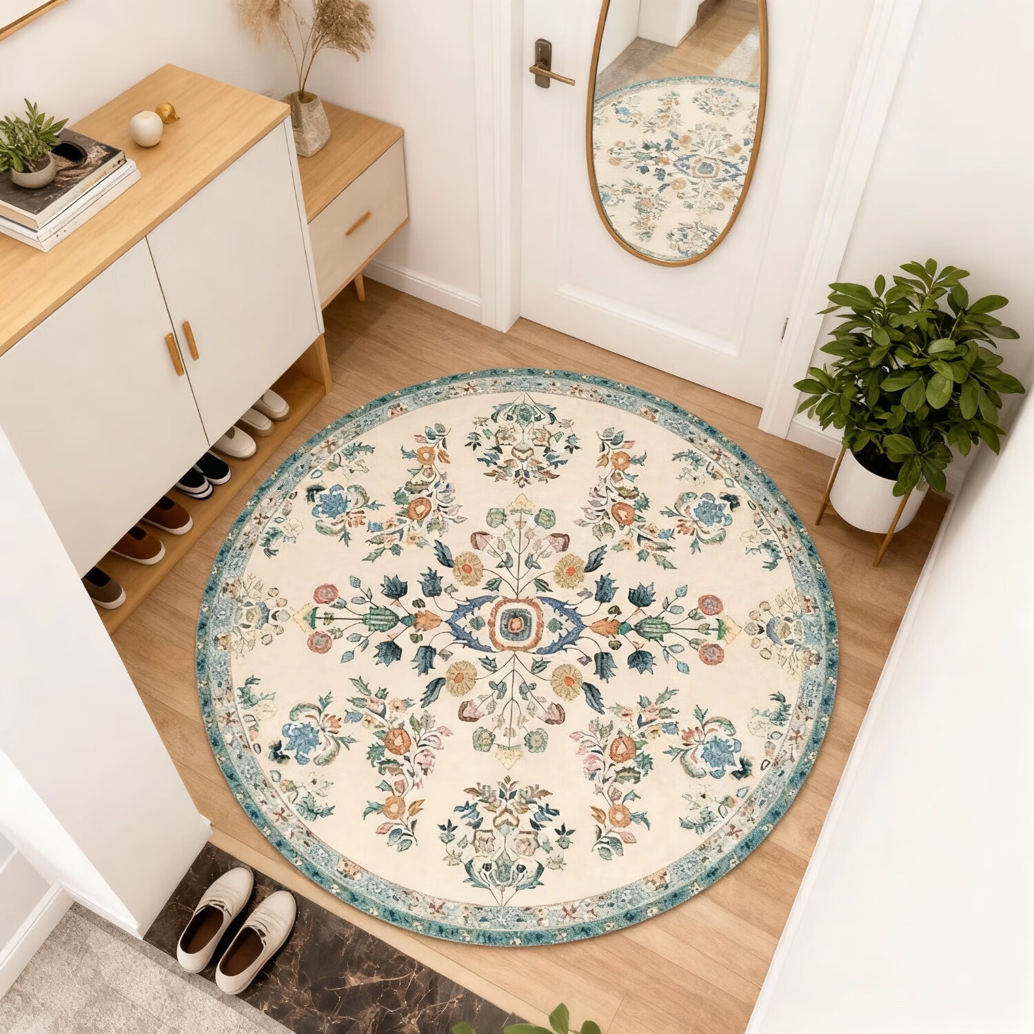欧纶斯(Oulens)圆形地毯轻奢风高级感客厅地垫茶几毯卧室门口沙发床边毯可水洗 莫妮卡圆形 100cm*100cm 【可水洗不掉色】