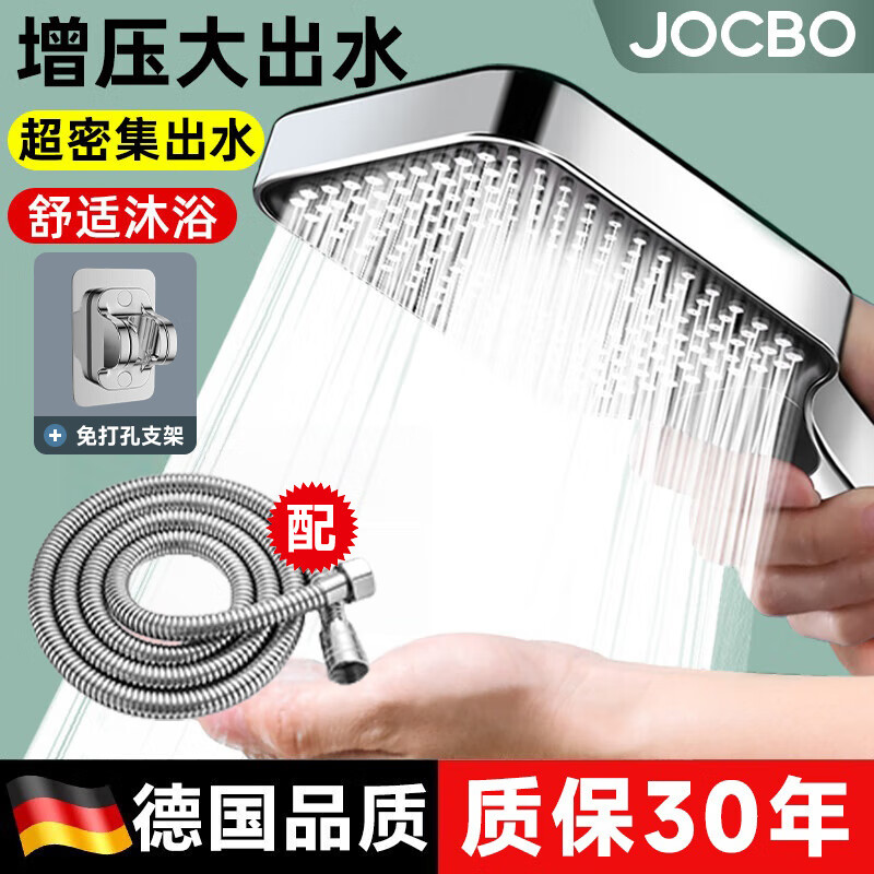 JOCBO【德国】淋浴花洒喷头增压喷淋头手持花洒家用浴室洗澡莲蓬花洒头 增压花洒+1.5米软管+支架【亮银】