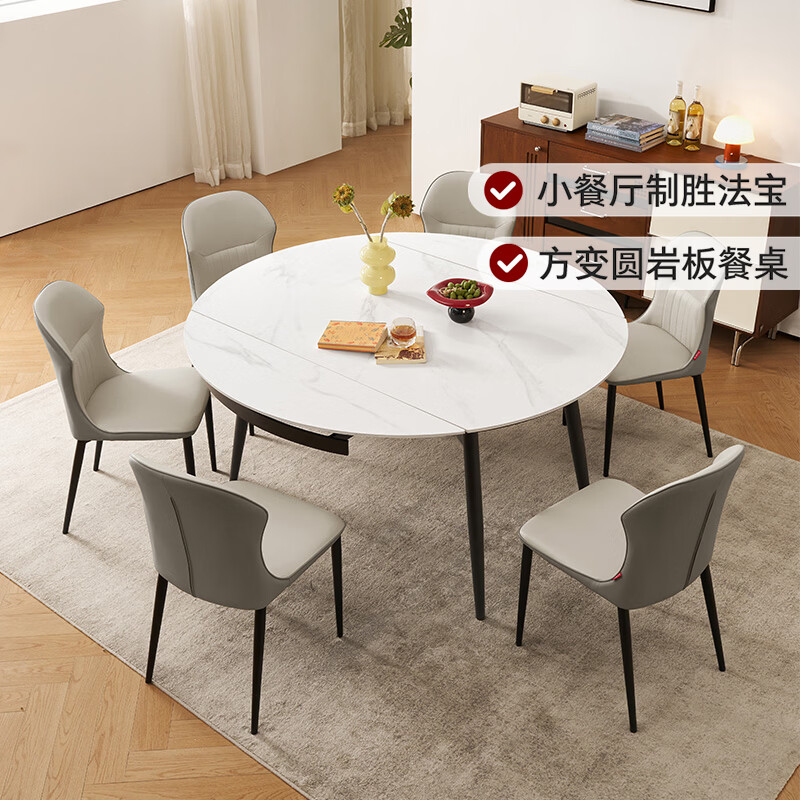 顾家家居简约岩板餐桌饭桌子家用可伸缩全托小户型餐桌椅子全套DS7209哑光 【雪山石哑光】1.35M餐桌+蝴蝶灰椅*6