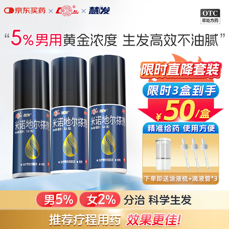 鲁南 慧发 米诺地尔搽剂 5%浓度60ml*3瓶男专用防脱生发育发发际线增长液洗发水脱发斑秃泡沫凝胶京东自营