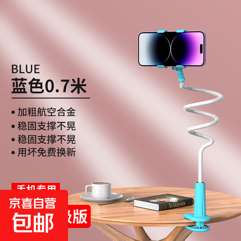 手机懒人支架床头手机架床边桌面躺着追剧宿舍床上看电视通用手机平板通用直播拍摄支撑架子 懒人支架-双夹款-0.7m-蓝色-1个