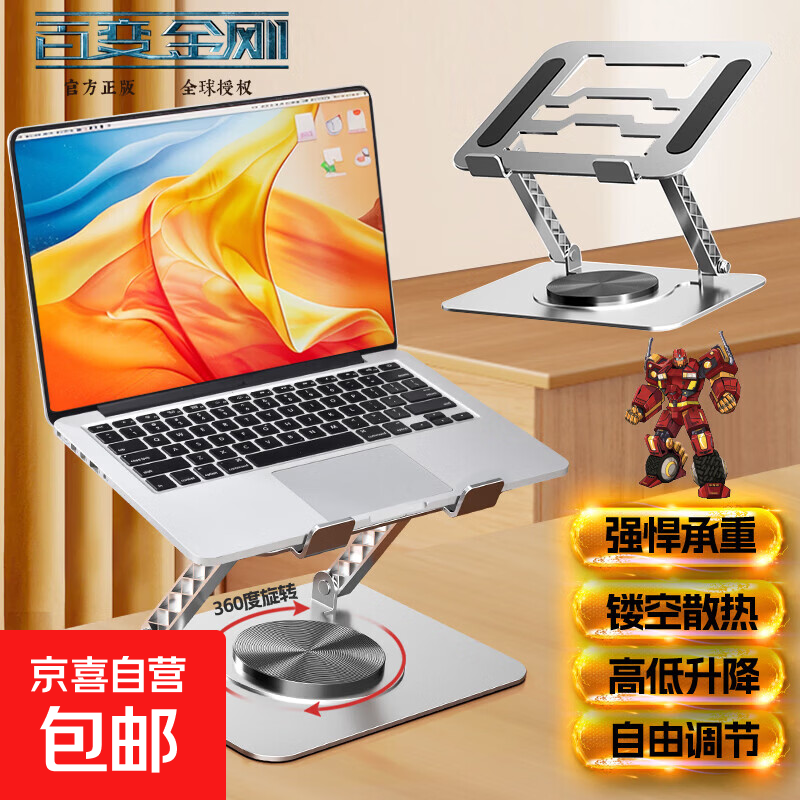 笔记本电脑支架360度旋转上下调节增高架子立式悬空游戏本散热架 360度无极旋转/可上下调节【月光银】 【碳素钢材质】笔记本/平板通用