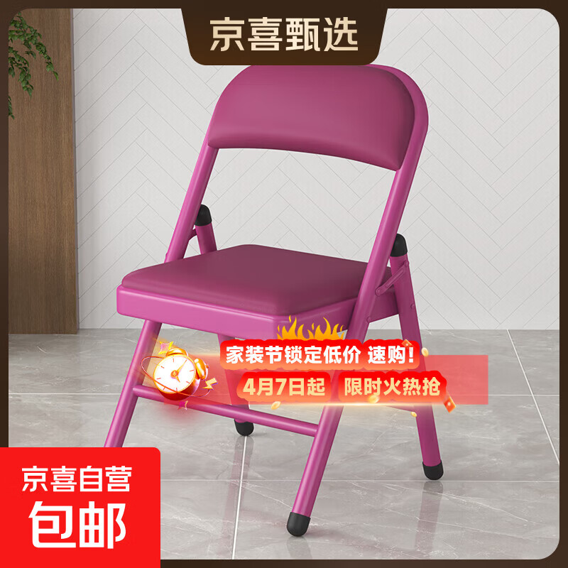 【京喜甄选】电脑椅折叠椅可折叠座椅工学椅凳子便携会议椅座椅 升级加固【紫色PU】
