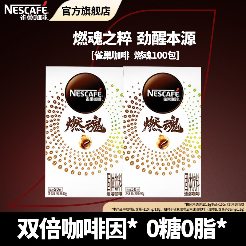 雀巢(Nestle)咖啡醇品深黑燃魂美式无糖低脂速溶纯黑咖啡粉办公健身 燃魂黑咖1.8g*100包[限期至27.11]