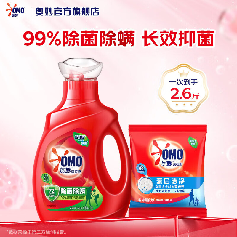 奥妙洗衣液除菌除螨去污渍家用机洗72小时抑菌持久留香宿舍手洗补充装 【学生宿舍用】2.6斤