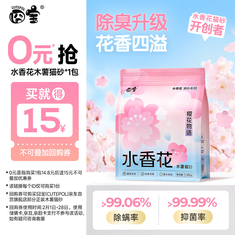 囧宝猫砂樱花物语木薯猫砂水香花除臭猫砂京东自营纯木薯砂2.5斤*1包