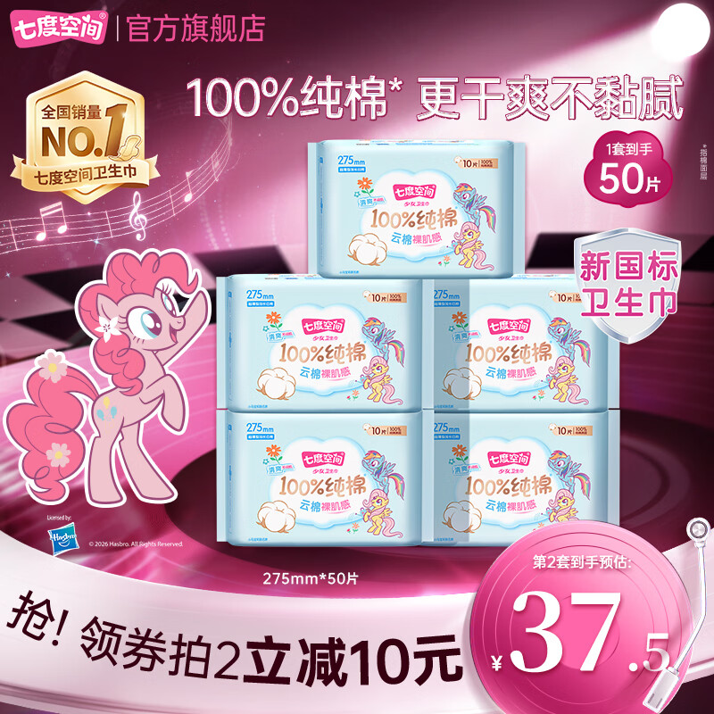 七度空间卫生巾姨妈巾少女超薄纯棉超长夜用卫生巾护垫批发 纯棉275mm*50片