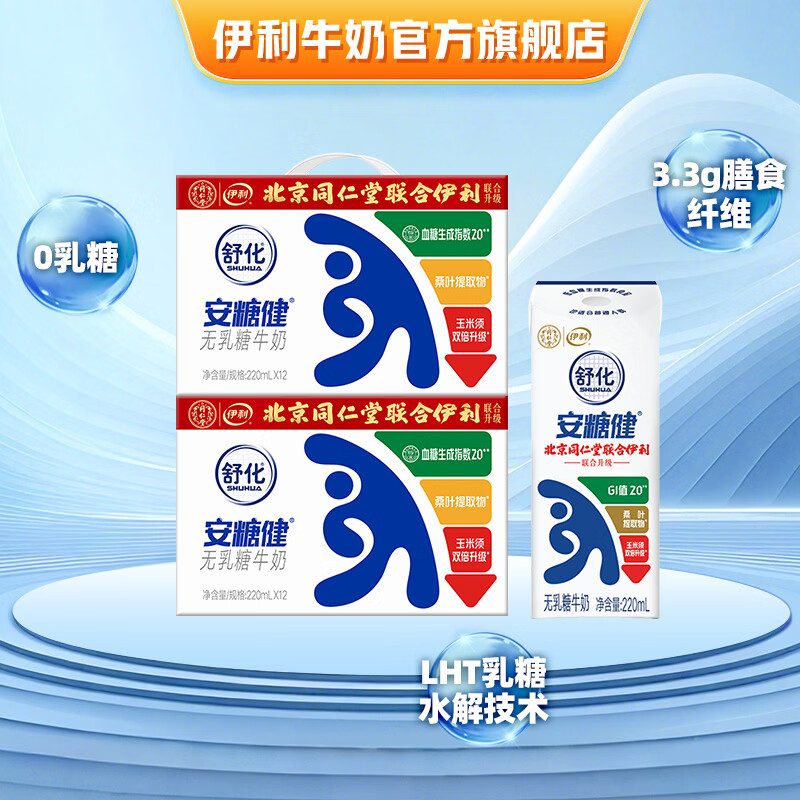 伊利舒化无乳糖牛奶系列零乳糖 营养细化 多种规格可选 年货礼盒 【安糖健】0乳糖220ml*12盒*2提 1月产