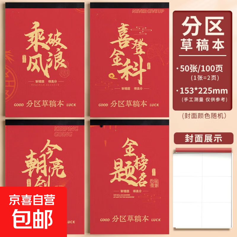 清华大学草稿本加厚名校空白草稿本北京大学验算演算稿纸考研专用分区草稿本激励初高中小学生用本 励志分区系列草稿本(封面随机) 2本装