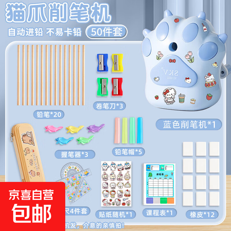 卡通可爱猫爪造型小学生手摇削笔器转笔刀自动进铅方便省力 【统统拿下*全家桶】蓝猫爪/送顶配50礼