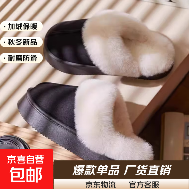 2025新款棉拖鞋女士秋冬季家居室内加绒保暖可爱少女心棉鞋外穿3 8803厚底3CM-黑色 38 -39适合37-38