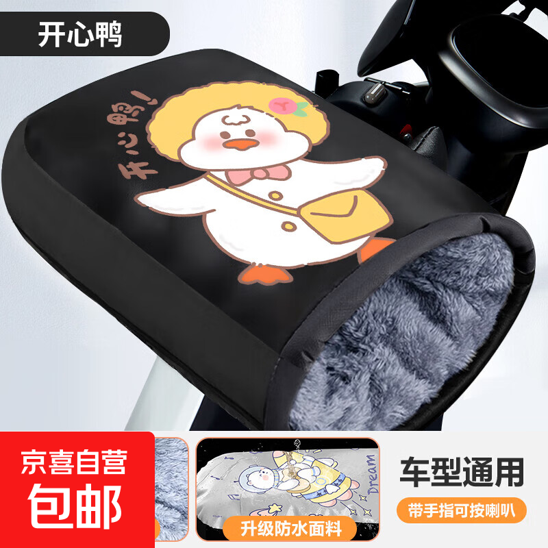 电动车手把套电瓶车冬天专用手套摩托车手把套冬季防风保暖套防水 黑开心鸭【防风防水 加绒加厚】车把套