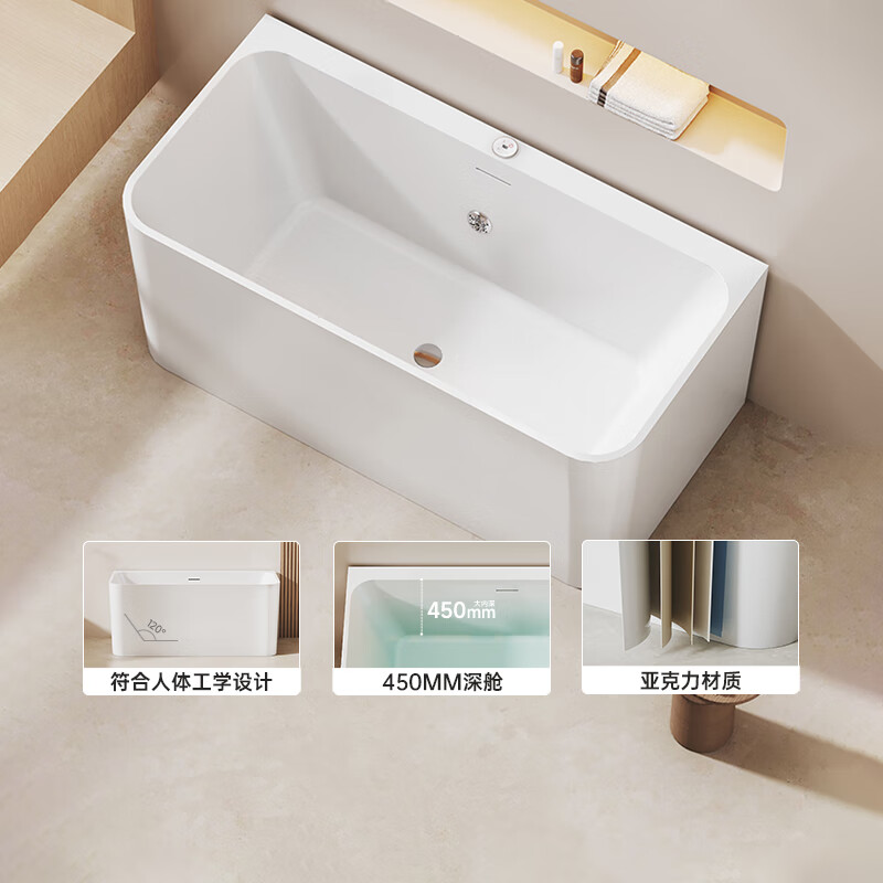 浪鲸(SSWW) 卫浴家用成人亚克力方形浴缸无缝一体泡澡浴缸含下水器0220鲸沐 空缸/配件缸恒温需定制,联系客服下单,定制周期30天