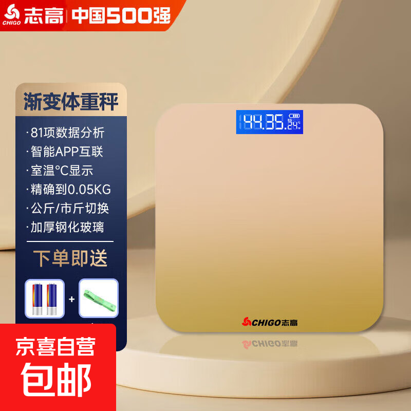体重秤 志高电子秤体脂秤家用精准人体秤家用称体重健康减肥专用小米专业体重管理健身人体秤称重 渐变粉【电池款】