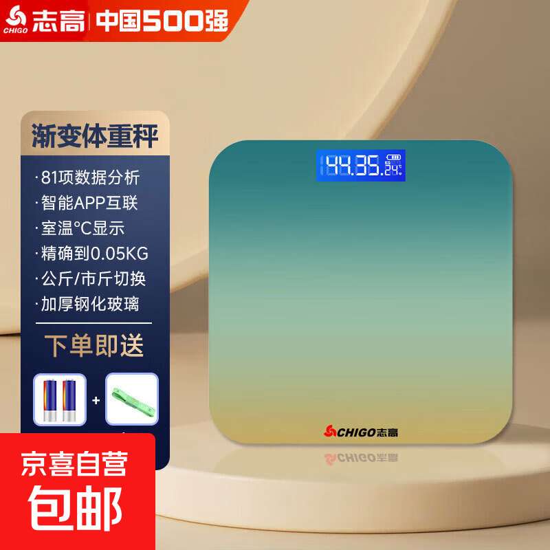 体重秤 志高电子秤体脂秤家用精准人体秤家用称体重健康减肥专用小米专业体重管理健身人体秤称重 渐变绿【电池款】