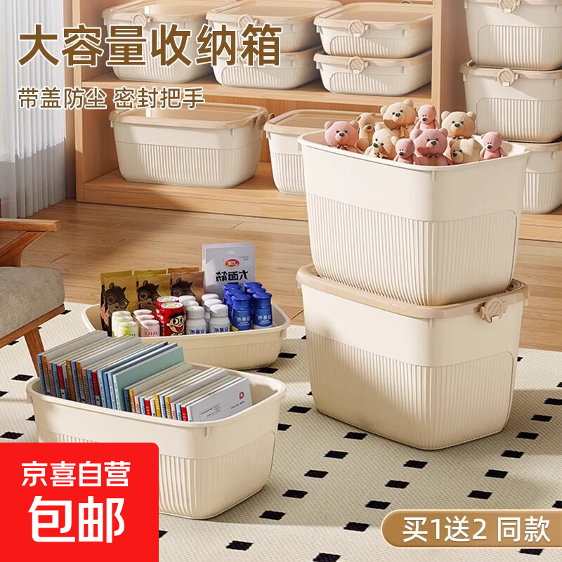 桌面收纳盒塑料零食小杂物长方形整理盒衣服化妆品带盖收纳储物筐 石榴红【大号带盖】 36*24*9cm 升级加厚-密封卡扣
